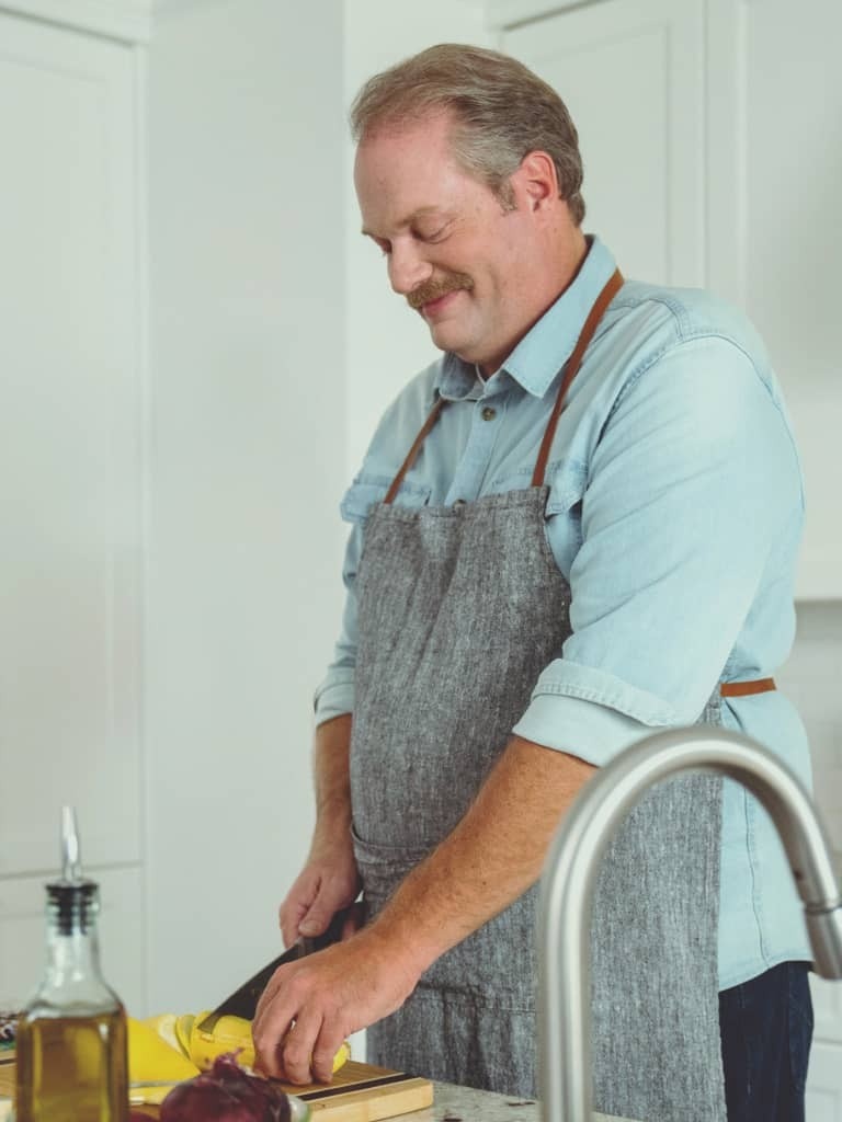 Hi, I’m Carl, the man behind the apron. As a dedicated home chef, I’ve learned that healthy eating doesn’t have to be time consuming or tasteless. Join me for a virtual cooking class, and see for yourself that preparing healthy meals can be simple, easy, and fun.